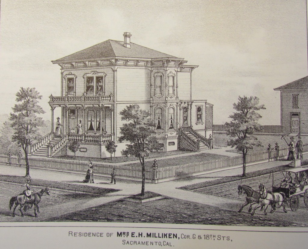 The book of lithographs includes the elegant two-story home on N Street, between 11th and 12th Streets, that you designed in 1882 for H. Weinrich, the owner of a wholesale liquor operation bearing his name. According to newspaper reports, the home cost about $7,000 to build, making it one of the bigger homes you did. Within its pages, you’ll also find the home you designed and built for the widow, Mrs. E.H. Milliken, on the northwest corner of 18th and G Streets. The book highlights the two-story frame home you drew for Cyrus H. Hubbard on the northwest corner of 15th and I Streets. Hubbard was a mayor of Sacramento, one of the freeholders who framed the city’s charter.