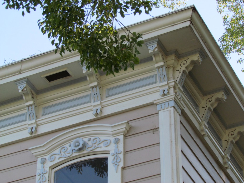 Large elms over-arched many homes to show that their owners had “arrived.” Even modest homes were painted white and embellished with porch railings, columns, fan lights, and picket fences. The attention to detail was exceptional. Many homes, yours included, featured decorative wooden bands, wood carvings and rosettes, and scrolled brackets under the eaves. Windows were often set in ornamental frames.